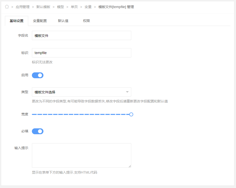 3.7版本开始,模板文件支持栏目变量,如模板文件填写 ($.tempfile),则会引入当前栏目变量tempfile的值的文件