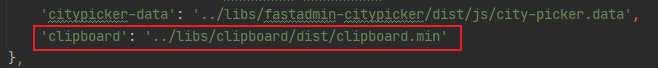 在 paths 属性的值对象最后一行追加 后缀是.js时,可以省略.js'clipboard': '../libs/clipboard/dist/clipboard.min'