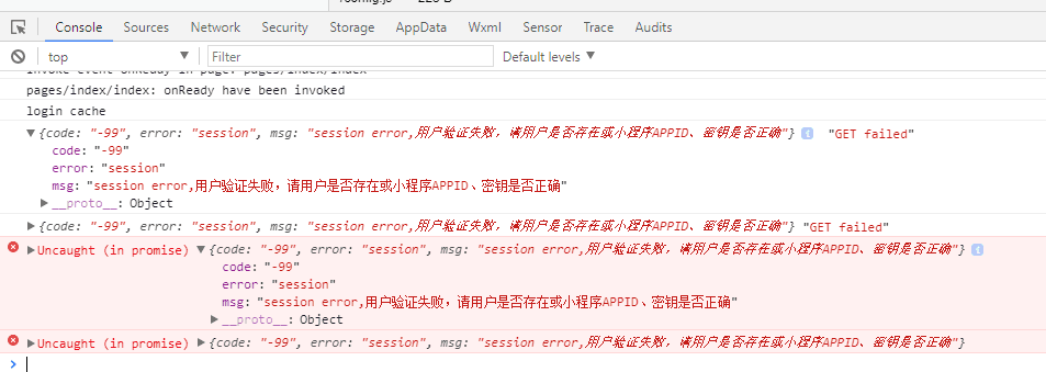 session error,用户验证失败,请检查用户是否存在或小程序APPID、密钥是否正确