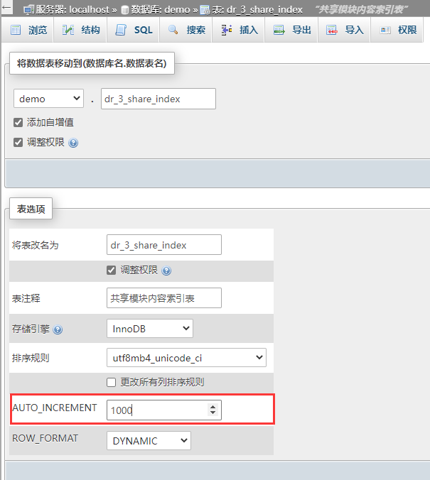 共享模块为例,只需要清空表 dr_1_share_index,表示清空操作,需要提前备份数据以免数据不可恢复。
